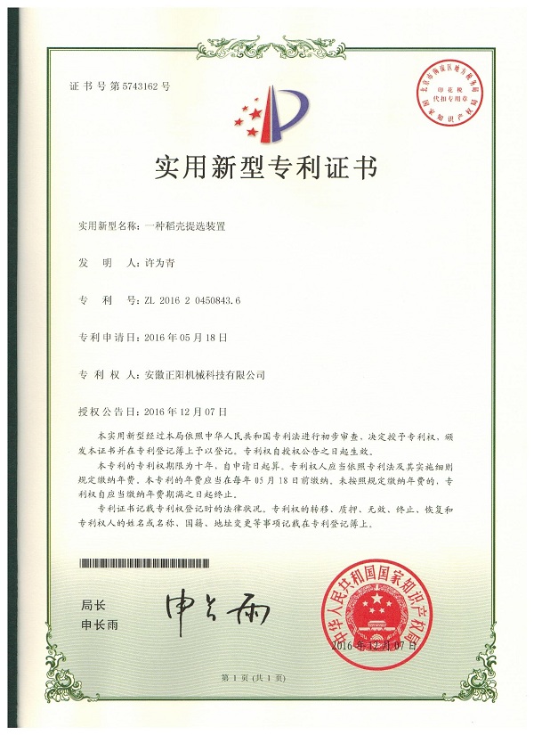 實(shí)用新型專利證書